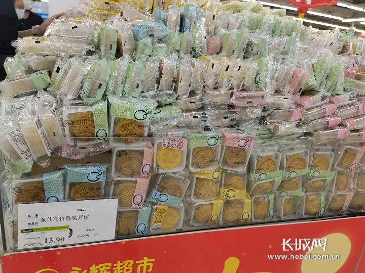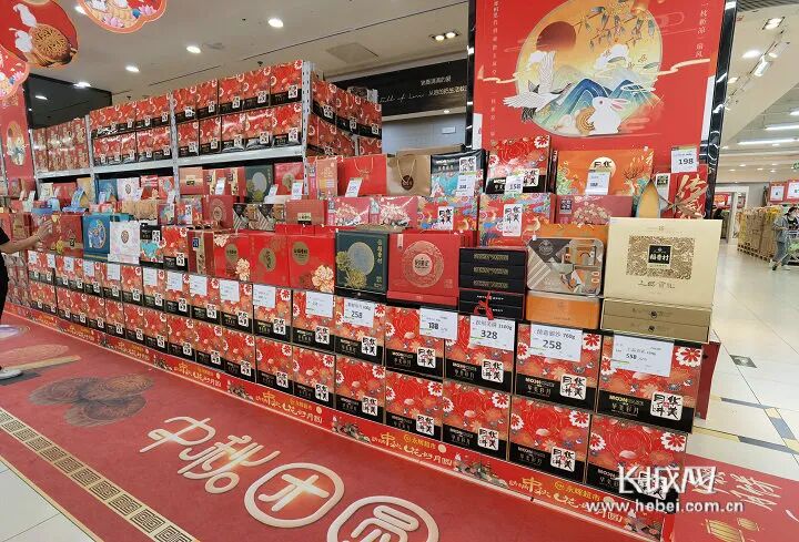 大型超市郊所卖的包装袋精致的礼盒月饼。长城网本报记者 闫思宇 摄