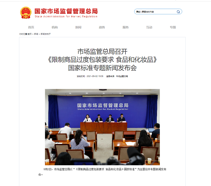 风险防范局举行《管制货品过分包装袋明确要求 肉类和护肤品》行业标准专题讲座新闻报道见面会。图片源于风险防范局官方网站