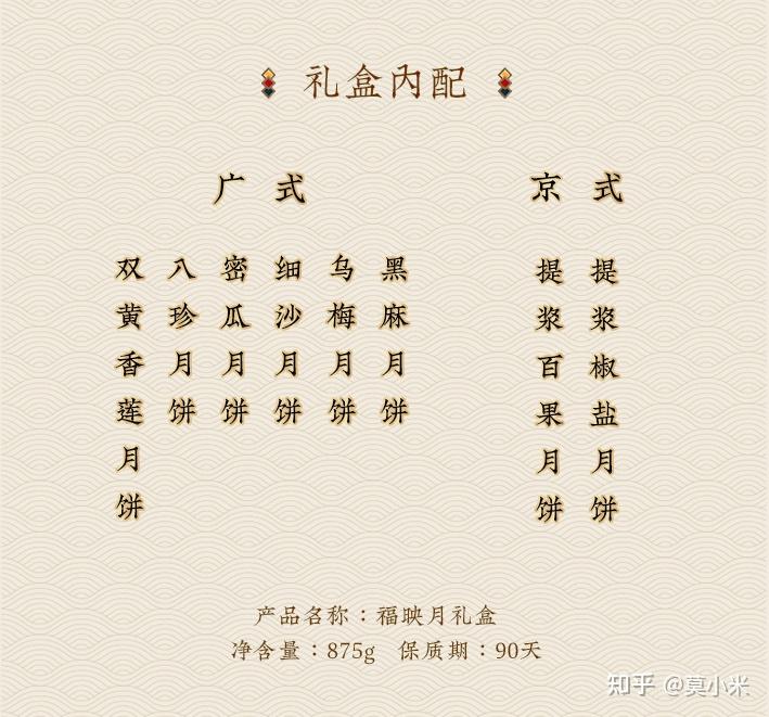 国际品牌月饼种类月饼馅种类储存条件净含量保质期北京奥瑞金柿叶月饼/苏式月饼福映月置于阴凉干燥处875g90 天【12饼8味如是说】