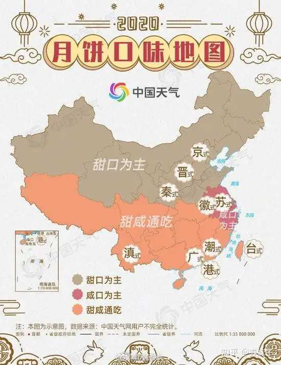 下面券妹子带大家一起来看看,我国天气网投票统计得出的月饼甜咸菜色示意图。